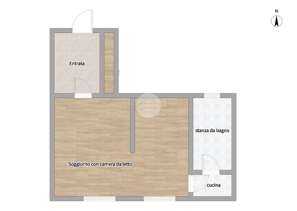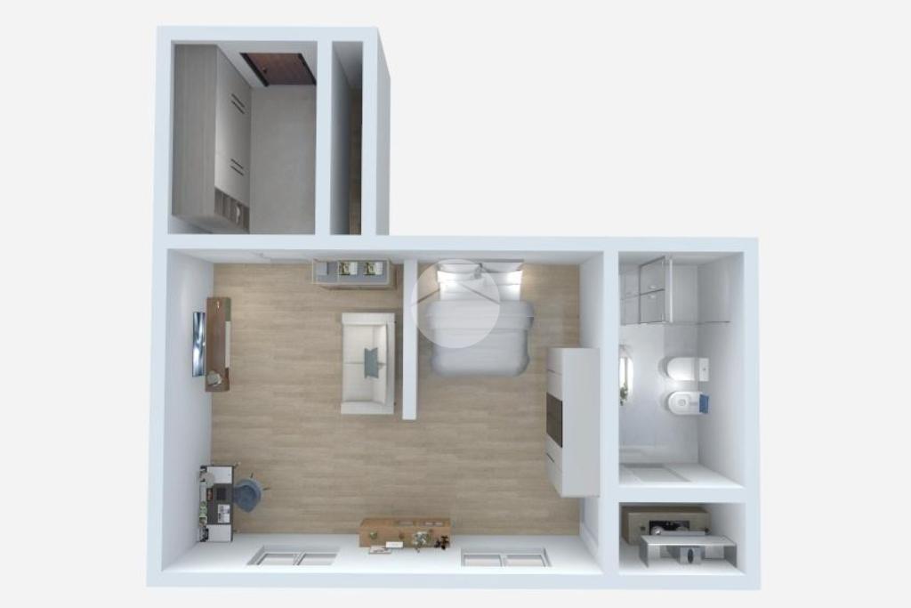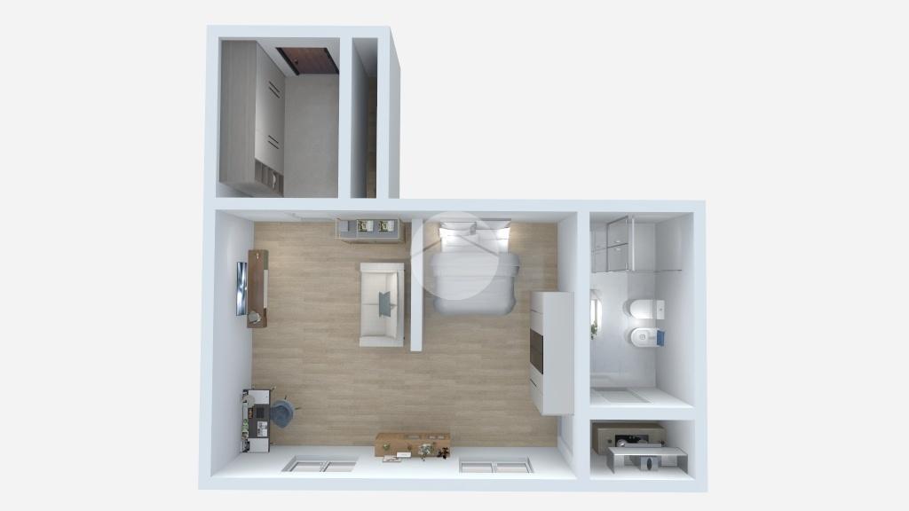 L’immobile è caratterizzato da una distribuzione funzionale degli spazi: accogliente ingresso in corridoio, un’ampia camera luminosa che funge da zona giorno/notte, cucinotto separato e un bagno dotato di box doccia.