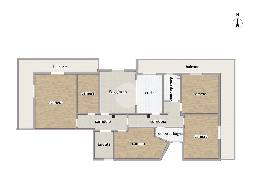 L’immobile, caratterizzato da una generosa quadratura di 150 mq e da un’ottima distribuzione degli spazi, è così composto: ingresso in ampio disimpegno, un luminoso soggiorno living con camino e cucina, cinque spaziose camere da letto e due bagni funzionali.